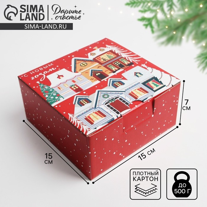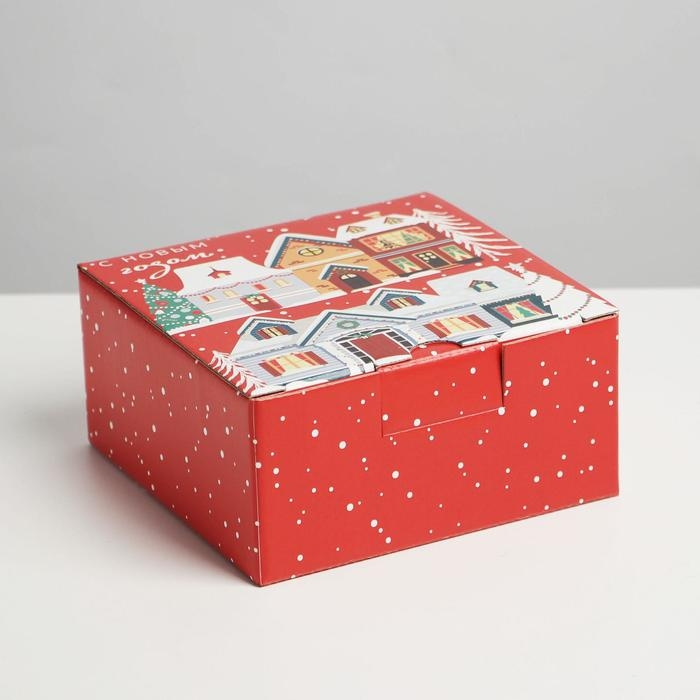 Коробка подарочная новогодняя складная «Зимний город», 15 х 15 х 7 см, Новый год