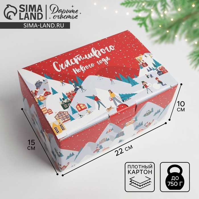 Коробка подарочная новогодняя складная «Зимний город», 22 х 15 х 10 см, Новый год