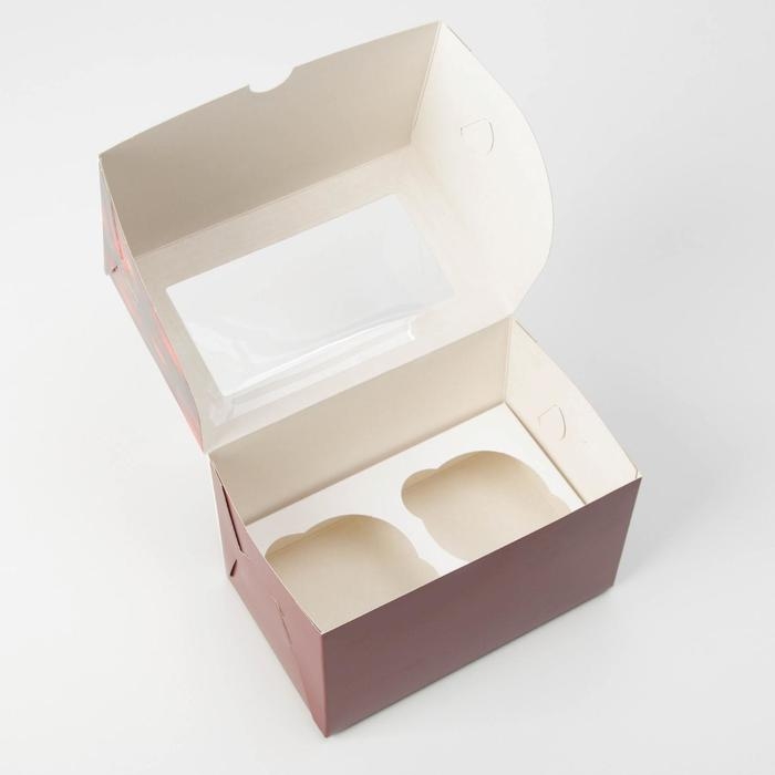 Коробка для капкейков, кондитерская упаковка, 2 ячейки «8 Марта», 16 х 8 х 10 см