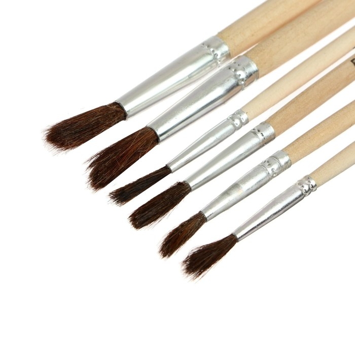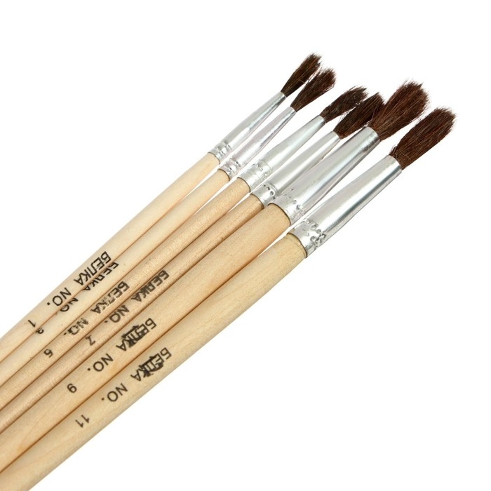Набор кистей белка круглые 6 штук (№1,3,5,7,9,11) с деревянными ручками, блистер