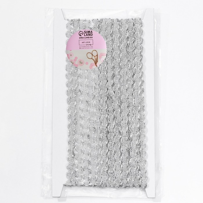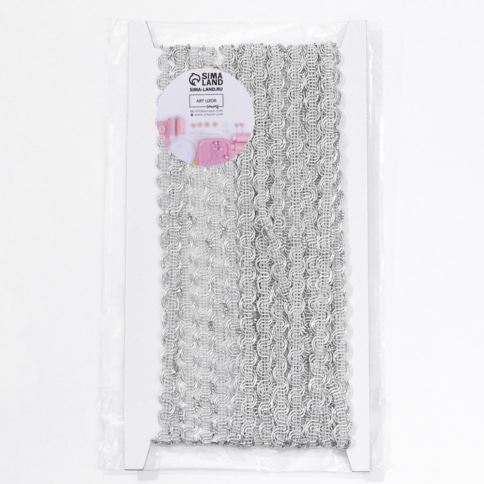 Тесьма декоративная «Волна», 9 мм, 10 ± 1 м, цвет серебряный