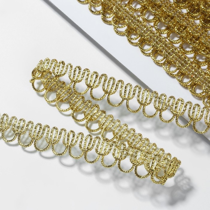 Тесьма декоративная «Петля», 12 мм, 10 ± 1 м, цвет золотой