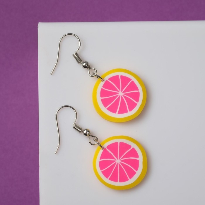 Серьги ассорти «Вкусняшки» яркий цитрус, цвет жёлто-розовый в серебре
