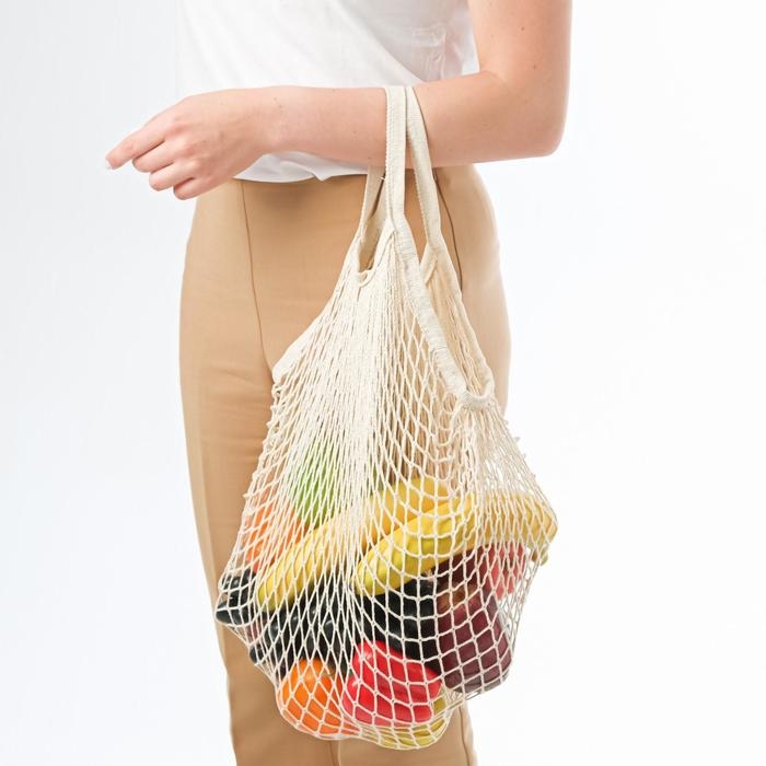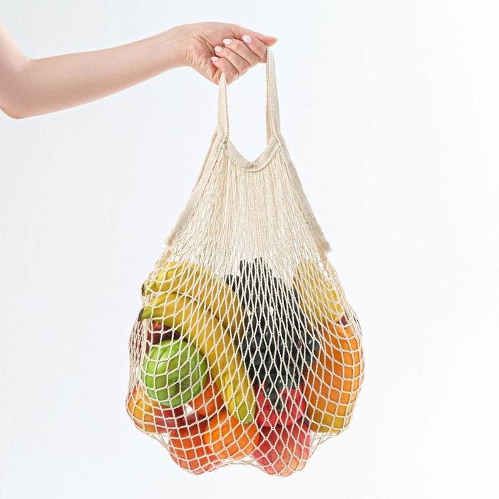 Сетчатые сумки из хлопка, произведенного с заботой о людях и природе, позволят вам обходиться без одноразовых пластиковых пакетов, а значит, уменьшить воздействие на климат. Кроме того, в таких сумках можно хранить фрукты и овощи.
