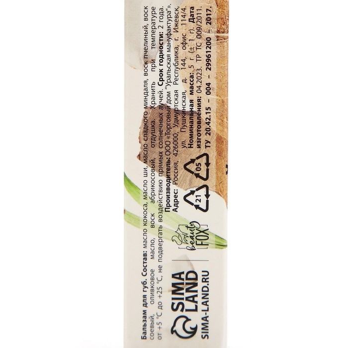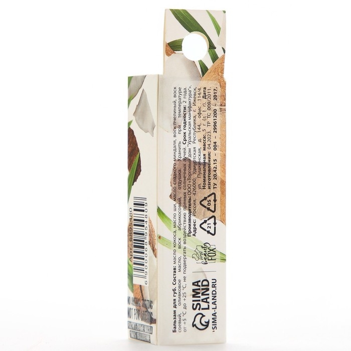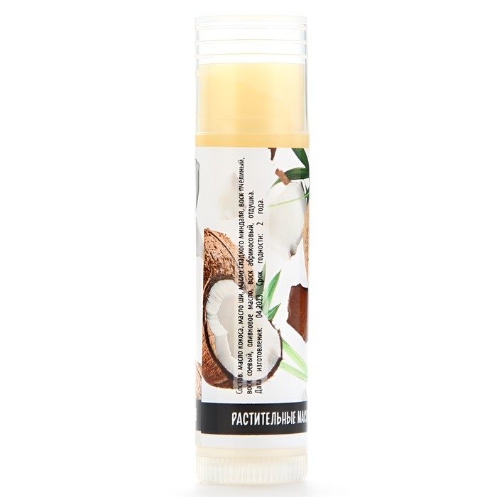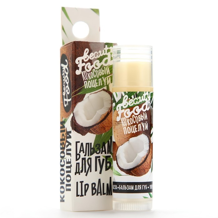 Бальзам для губ на основе растительных масел, 5 г, аромат кокоса, BEAUTY FOOD