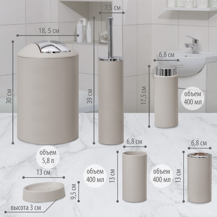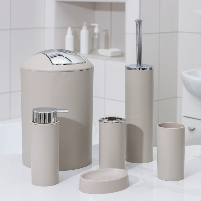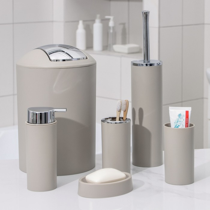 Набор аксессуаров для ванной комнаты SAVANNA «Сильва», 6 предметов (дозатор, мыльница, 2 стакана, ёршик, ведро), цвет серый
