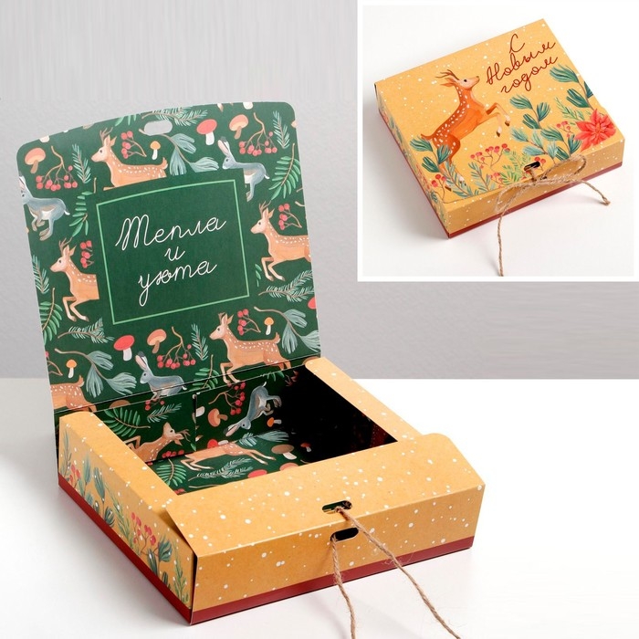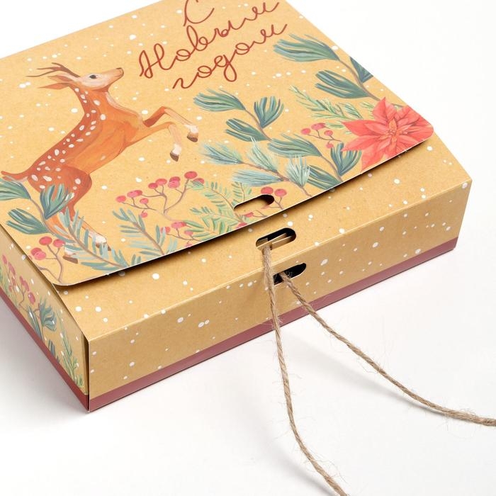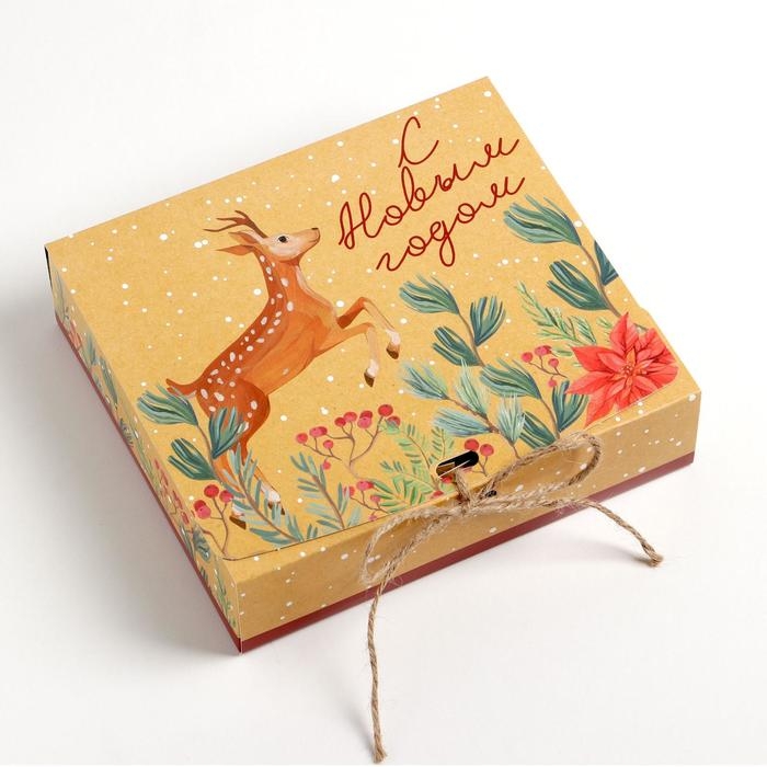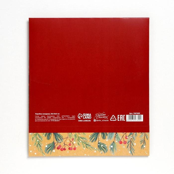 Коробка подарочная новогодняя складная двухсторонняя «Новогодняя ботаника», 20 х 18 х 5 см, БЕЗ ЛЕНТЫ, Новый год