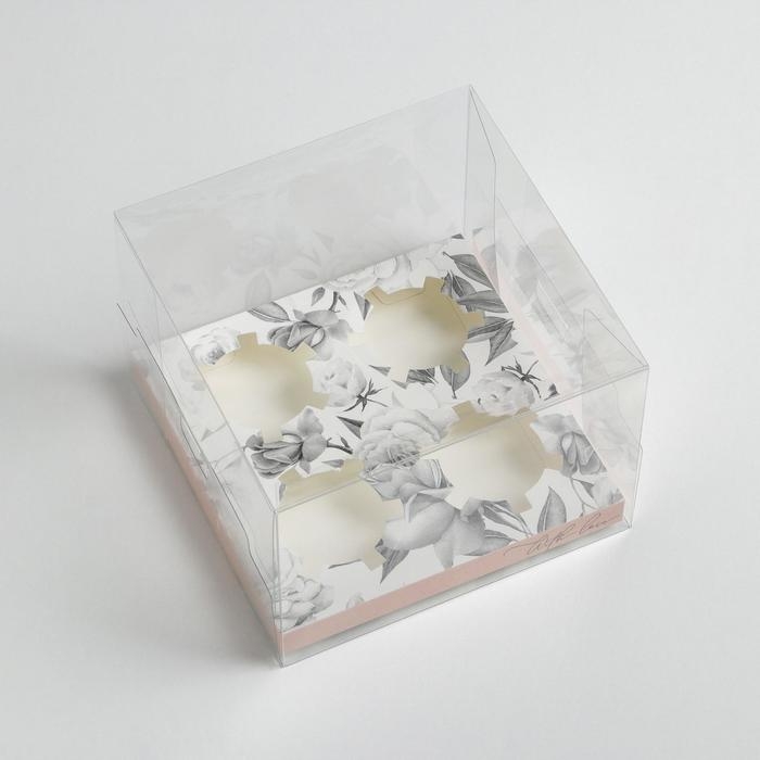 Коробка для 4 капкейка с прозрачной крышкой, "Мужской дляарок", 16 × 16 × 10 см, кондитерская упаковка