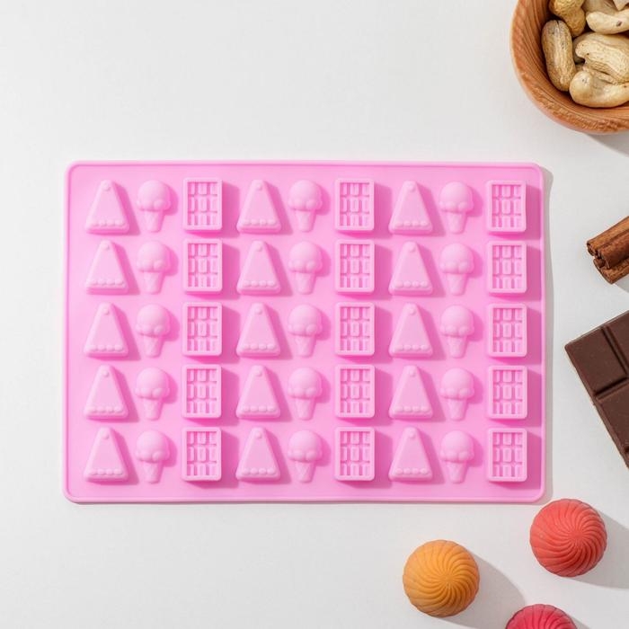Форма для мармелада «Сладкоежка», силикон, 19,5×13,6×1 см, 45 ячеек, цвет МИКС
