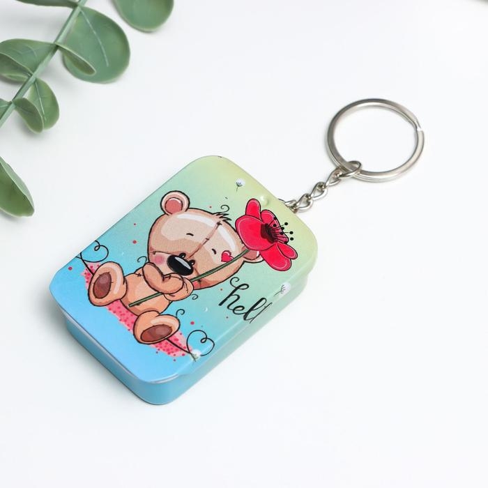 Шкатулка на кольце металл прямоугольная "Милый медвежонок" МИКС 1,7х4,2х5,7 см