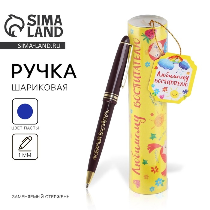 Ручка в тубусе «Любимому воспитателю» пластик, синяя паста, 1.0 мм