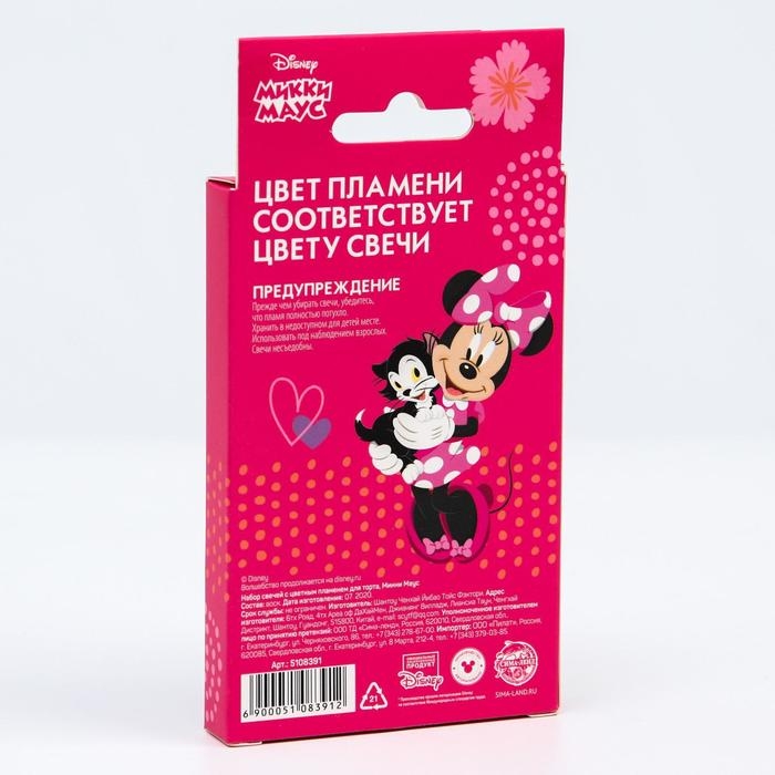 Набор свечей в торт 6 штук, с цветным пламенем, Минни Маус