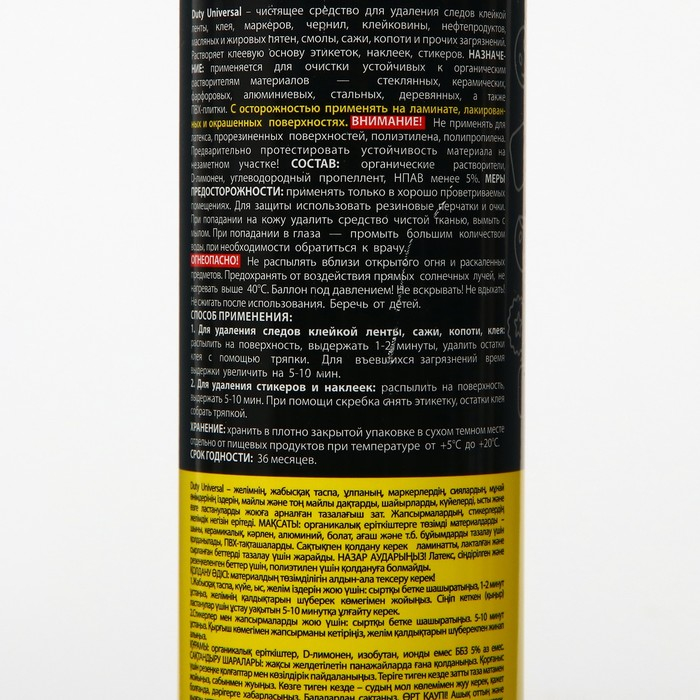 Удалитель клейкой ленты, клея, наклеек — чистящее средство для удаления следов клейкой ленты, клея, маркеров, чернил, клейковины, нефтепродуктов, масляных и жировых пятен, смолы, сажи, копоти и прочих загрязнений. Растворяет клеевую основу этикеток, наклеек, стикеров. Подходит для обработки стеклянных, металлических, деревянных, керамических и ПВХ поверхностей.