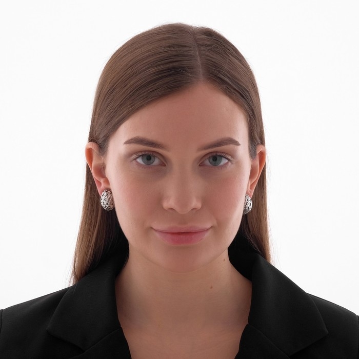 Клипсы «Ажур» капли с завитками, цвет белый в золоте