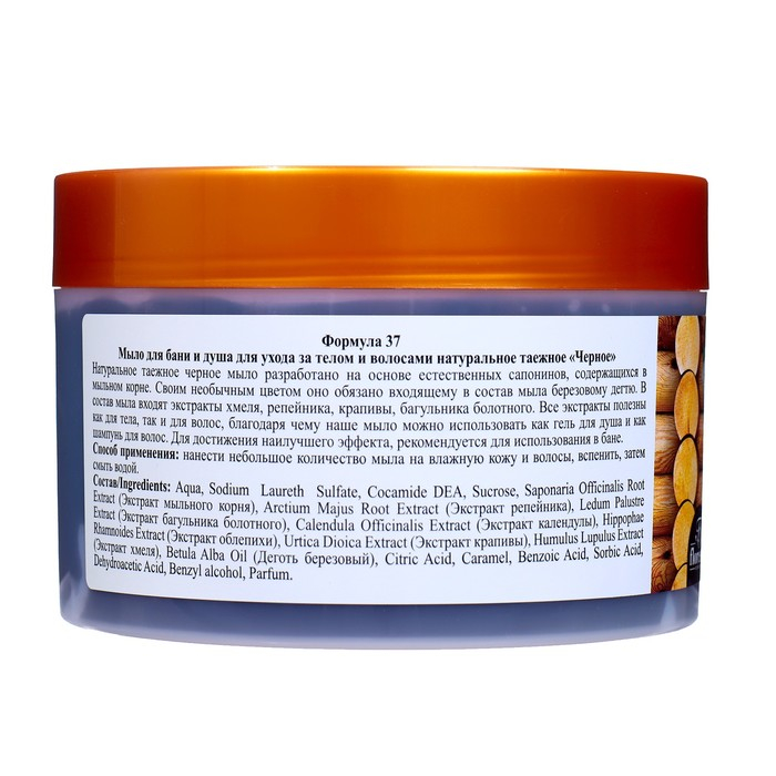 Мыло для бани и душа, для ухода за телом и волосами натуральное таежное Черное 450 мл