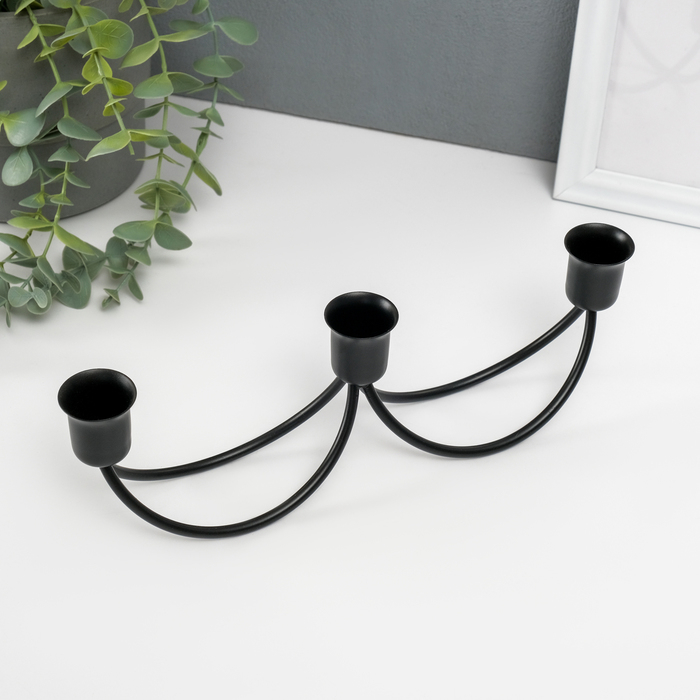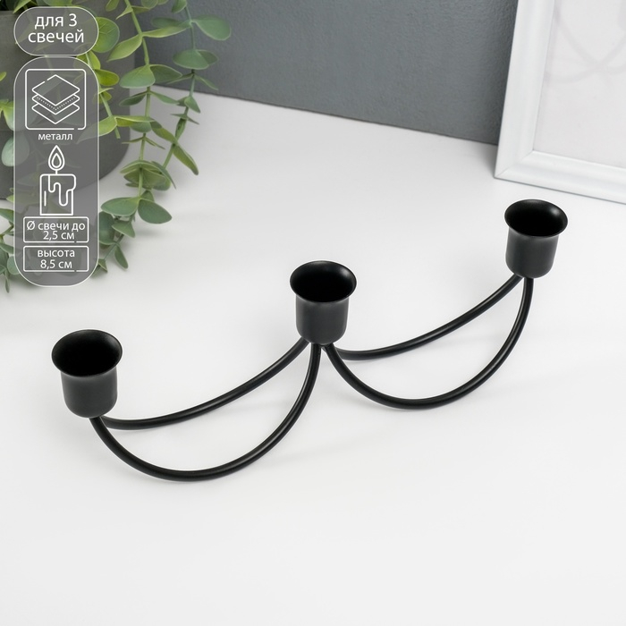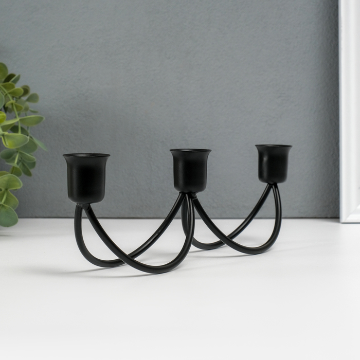 Подсвечник металл на 3 свечи "Качели" чёрный 8,5х26,5х5,5 см