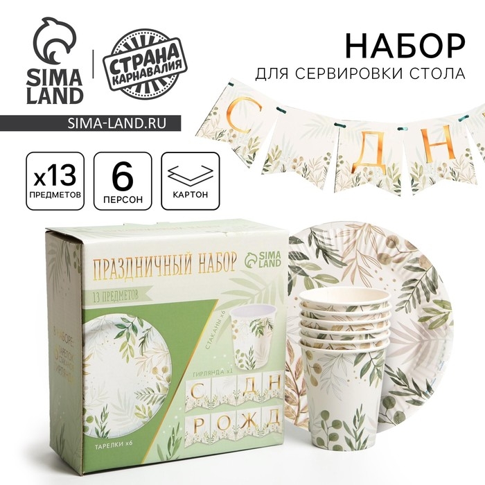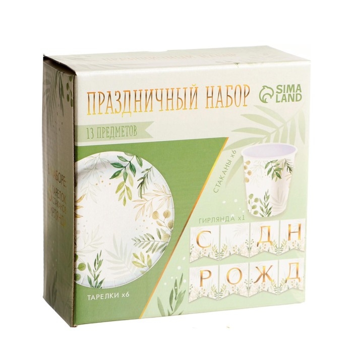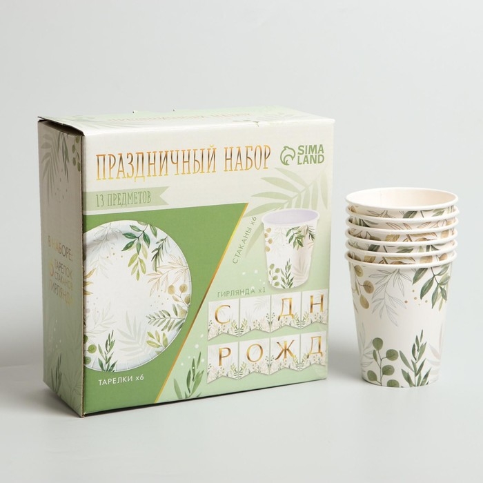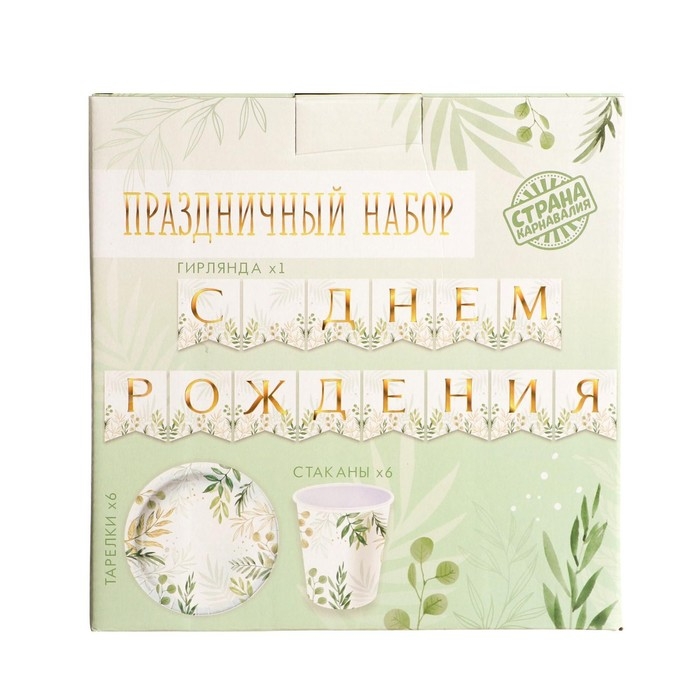 Набор бумажной посуды одноразовый Природа», 6 тарелок, 6 стаканов, 1 гирлянда