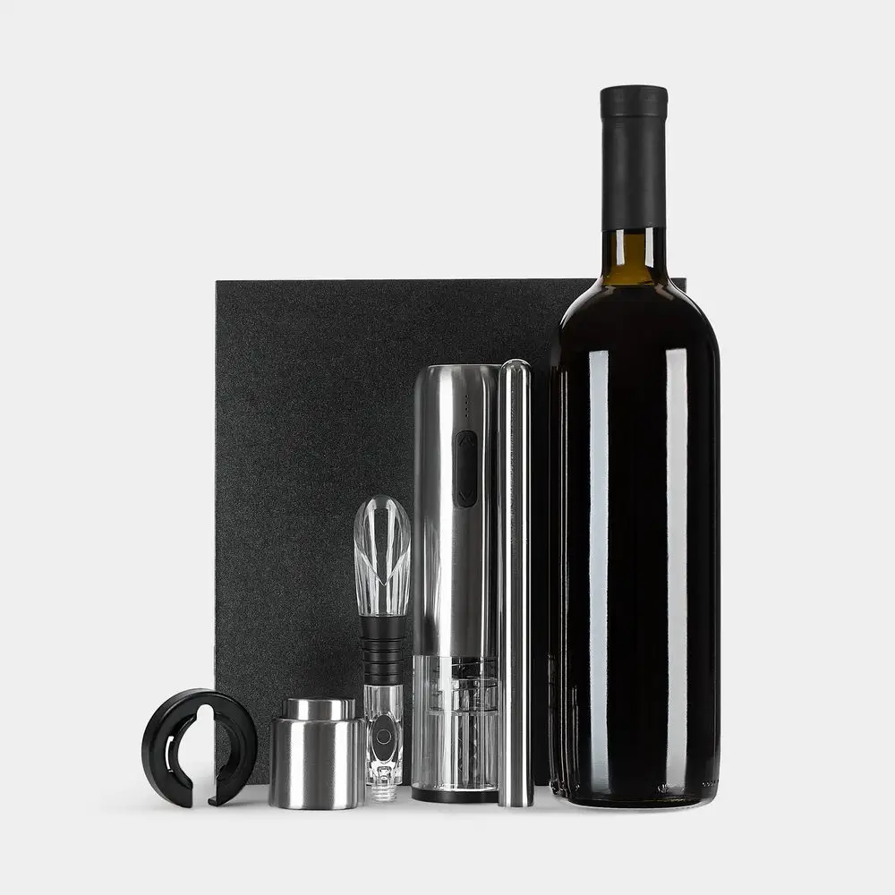 Набор Veritas — настоящая находка для ценителей вин. Благодаря продуманному дизайну использование автоматического штопора практически не требует участия человека. Изящный чиллер поддерживает температуру напитка до часа, удобная разливочная воронка дополнительно аэрирует вино и не позволяет пролить его мимо бокала, а небольшая вакуумная пробка сохраняет вкусовые свойства напитка в течение нескольких дней.