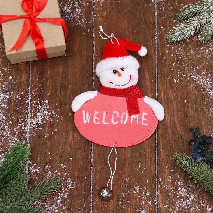 Мягкая подвеска "Снеговик с бубенцом" 10х15 см, красный