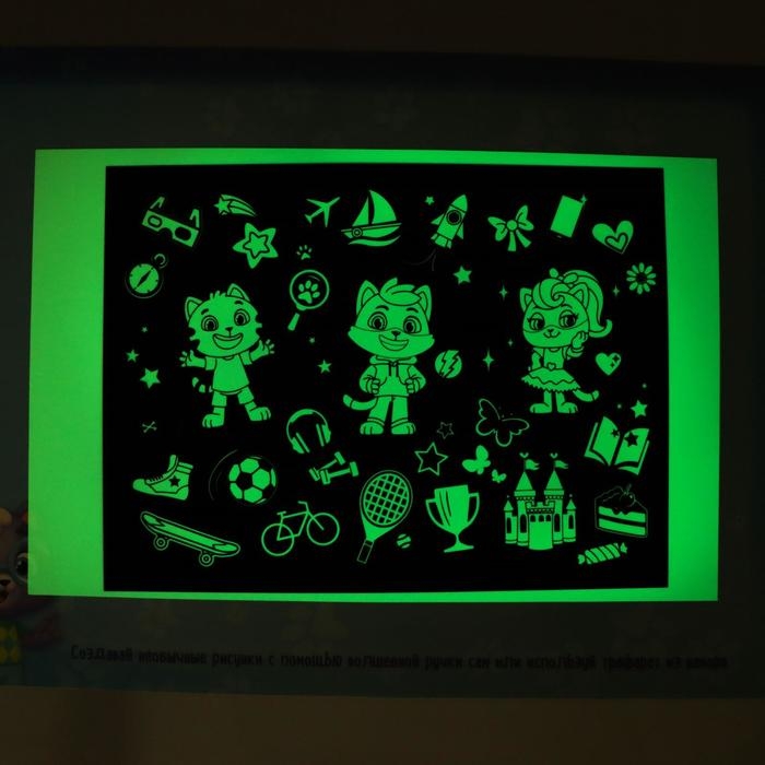 Набор для рисования светом «Котейки», ручка с фонариком и невидимыми чернилами