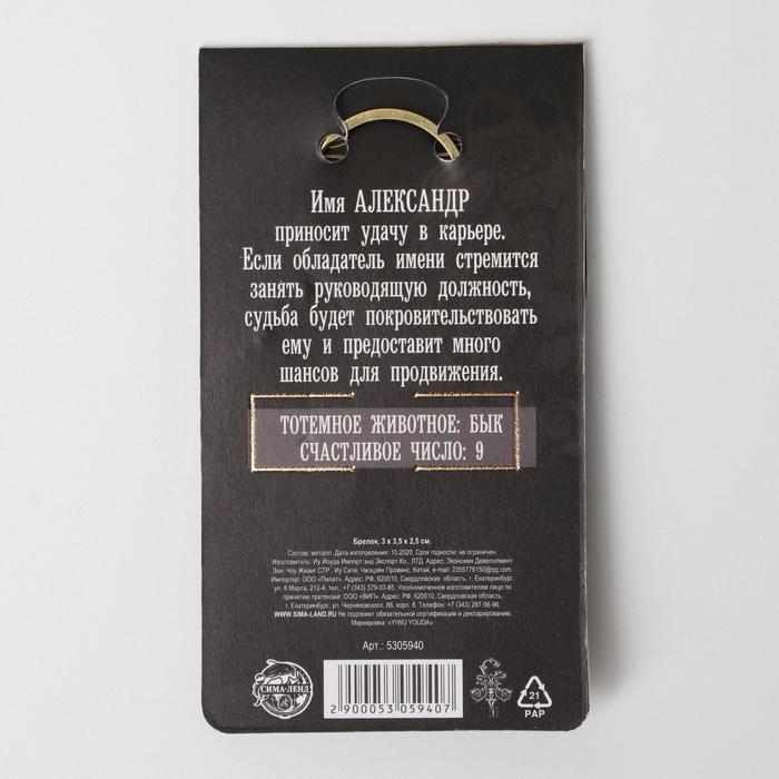 Брелок для ключей , металлический, талисман «Александр» латунь, 3 х 3,5 х 2,5 см