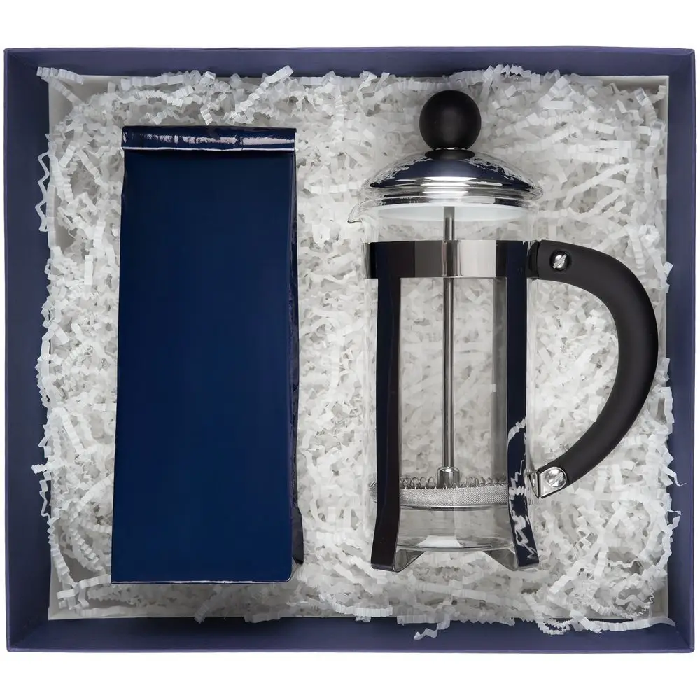 Коробка Silk с ложементом под ежедневник и ручку, ver. 2, синяя