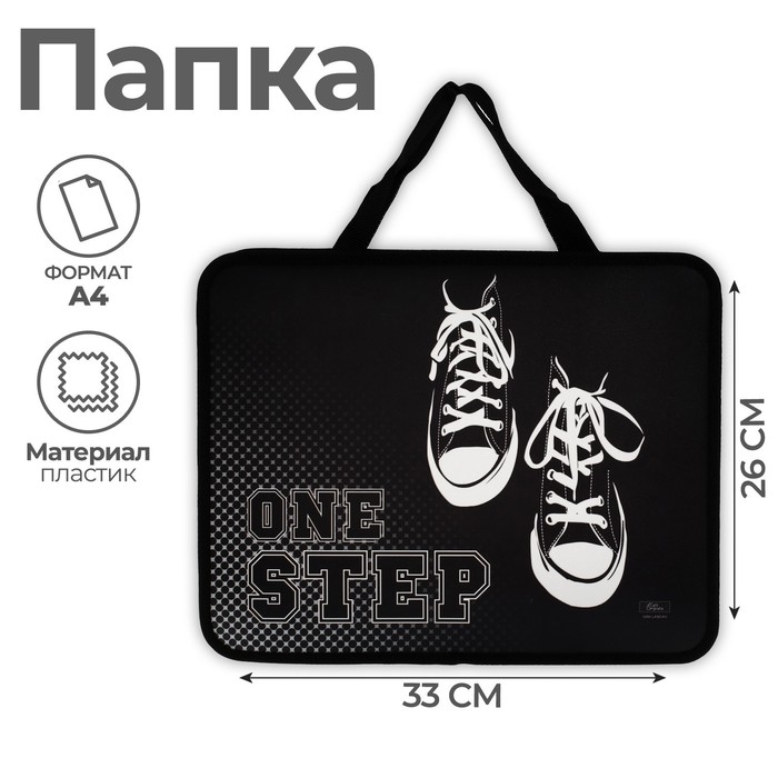 Папка с ручками А4, 330 х 260 х 75 мм, пластиковая, ручки-тесьма, Calligrata "Кеды"
