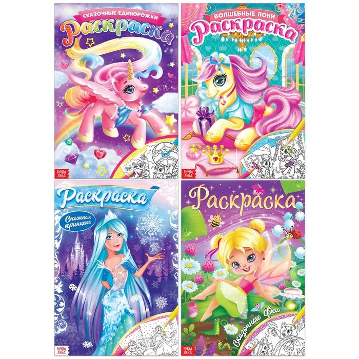 Набор раскрасок для девочек «Волшебные рисунки», 4 шт. по 16 стр., формат А4