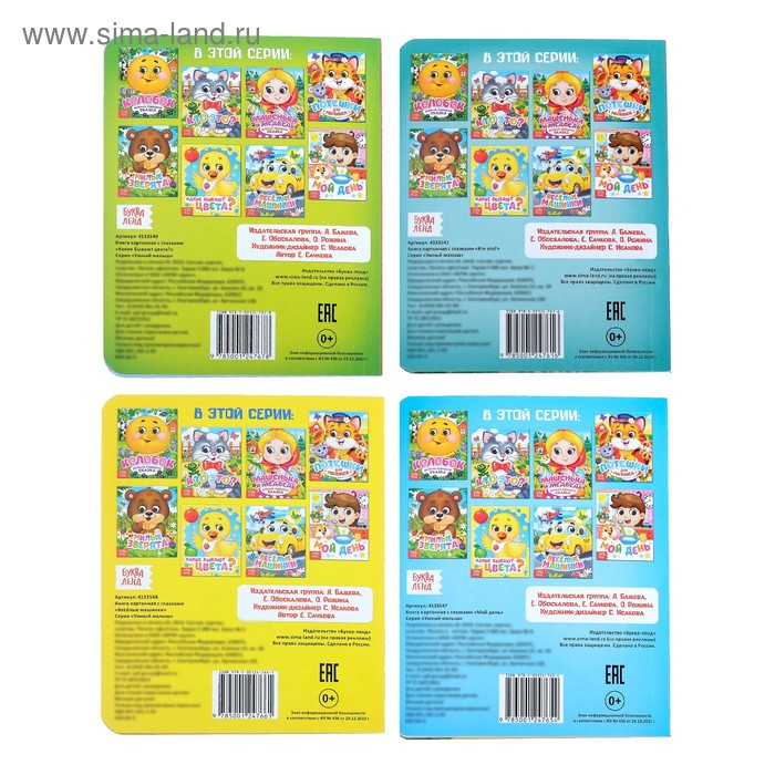 - В книгах на каждом развороте есть свой персонаж с забавными глазками, которые привлекут внимание малыша.