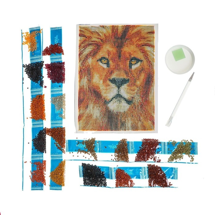 Алмазная мозаика с полным заполнением на холсте «Лев», 15 х 21 см
