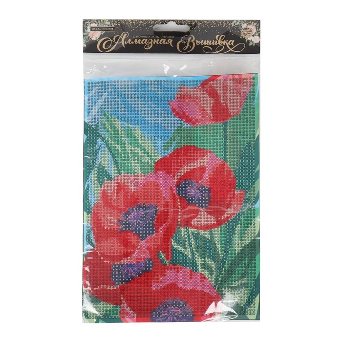 Алмазная мозаика с полным заполнением на холсте «Маки», 15 х 21 см