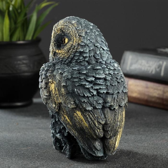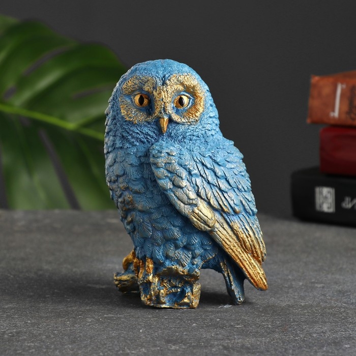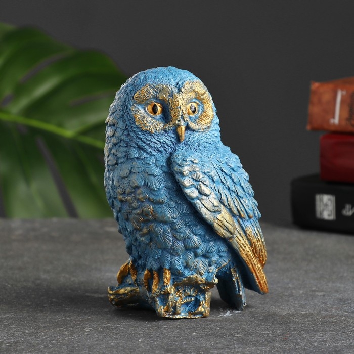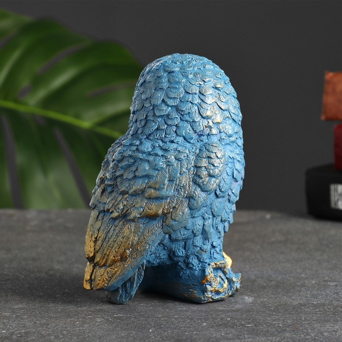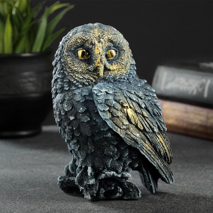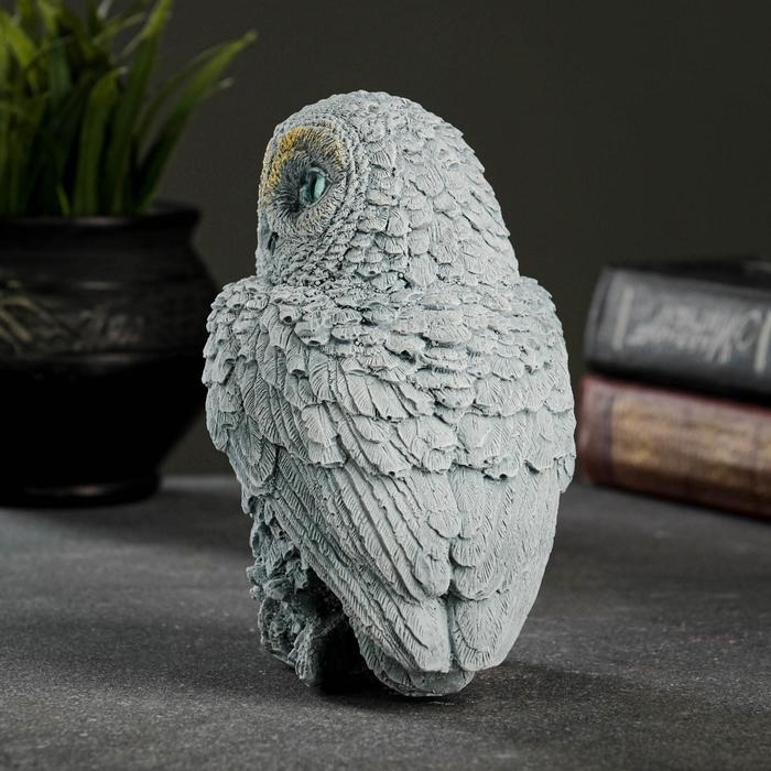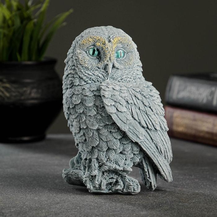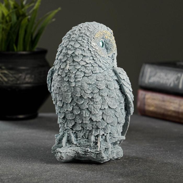 Фигура "Сова на пеньке" серо-голубой 10х9х14.5см