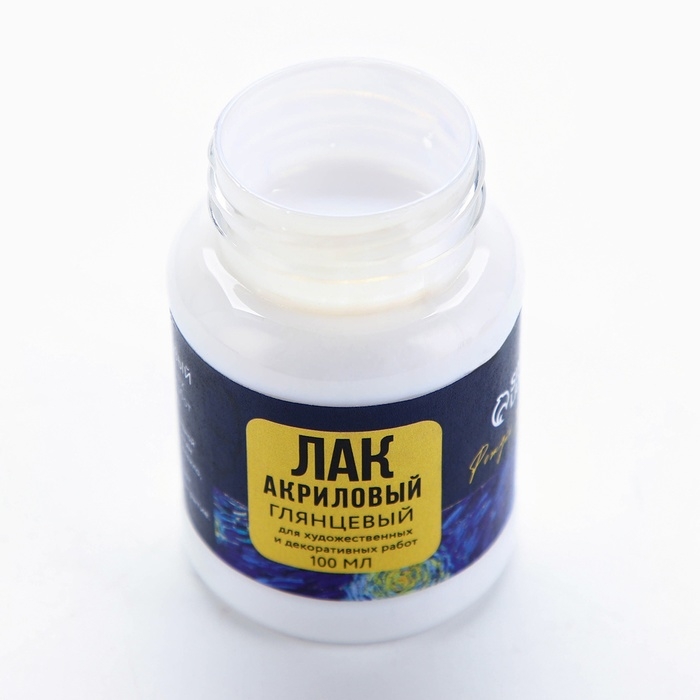Лак акриловый для художественных и декоративных работ на водной основе, используется как покрывной лак по любым поверхностям ( бумага, картон, дерево, стекло, металл, пластик.). После высыхания образует прозрачное глянцевое покрытие.