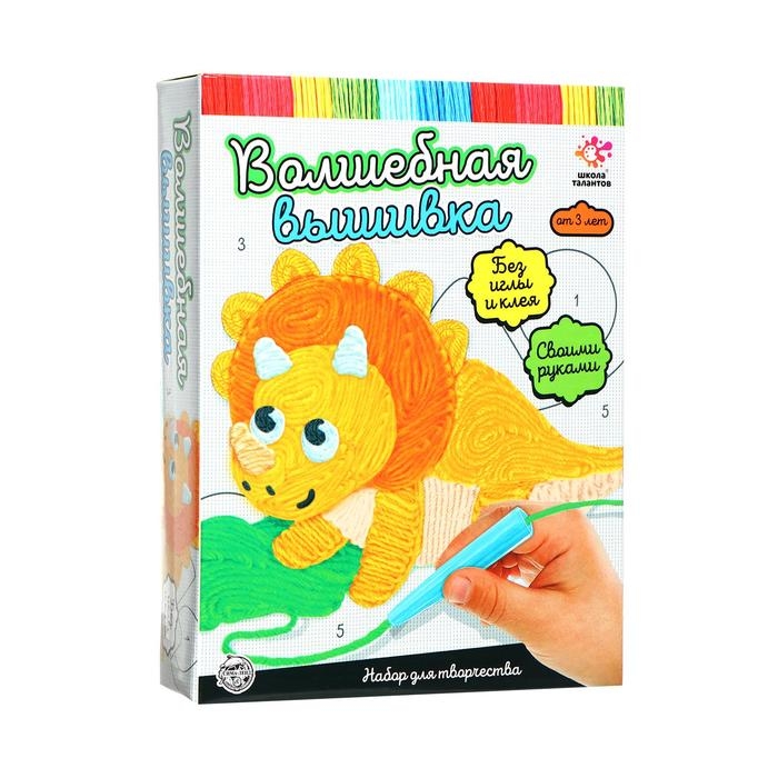 Выберите нужный цвет нити, проденьте её в колпачок и начинайте заполнять рисунок. Благодаря специальной основе нитки будут легко закрепляться и шаг за шагом превращаться в красивую картину.