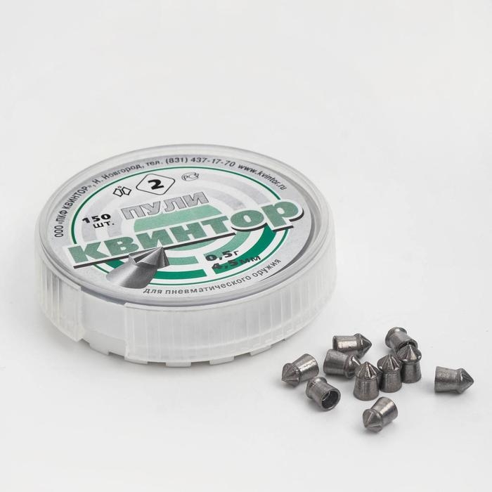«Квинтор» — одна из разновидностей свинцовых штампованных пуль, имеющих головную часть остроконечной формы с нанесенной насечкой. Эта особенность строения максимально увеличивает степень ее проникающей способности. Пули имеют высокие показатели скорости (в полете) и неплохую кучность попадания в цель. Подходят для моделей пневматического оружия различной мощности, пользуются у охотников особой популярностью.