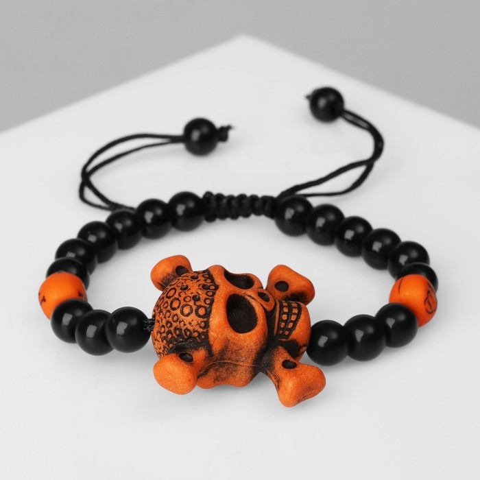 Браслет «Череп с костями» этника, цвет чёрно-коричневый, d=6 см