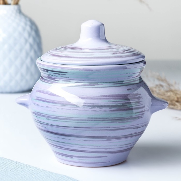 Горшок керамический для запекания №5 с ручками, 0,5л / 10х10,5см, лаванда