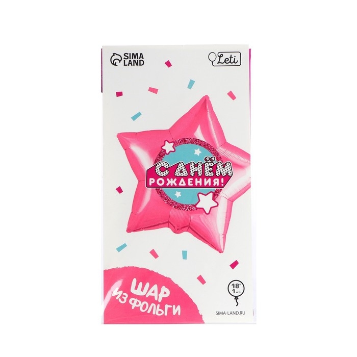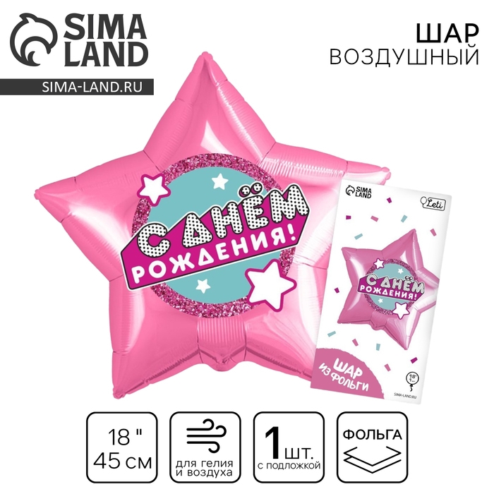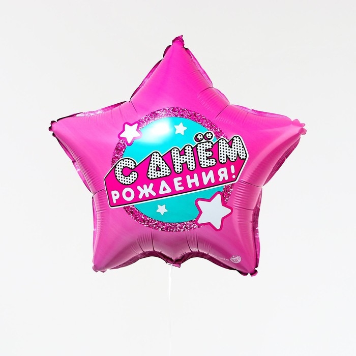 Воздушный шар фольгированный 18" «С днём рождения», звезда, с подложкой