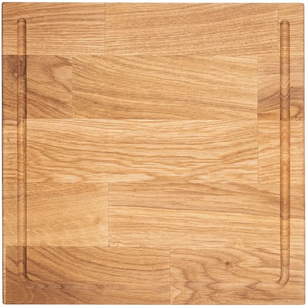 Древесина дуба смотрится благородно — если доску перевернуть упором вверх, то она пригодится не только для нарезки продуктов, но и для сервировки стола.Рекомендуется промывать в мыльной воде после использования и насухо вытирать после мытья. Не замачивать, держать в сухом месте.