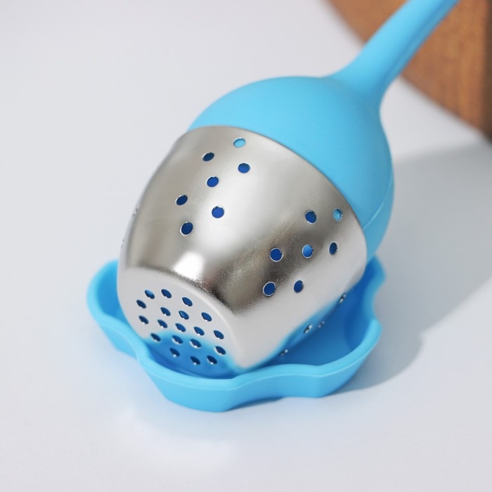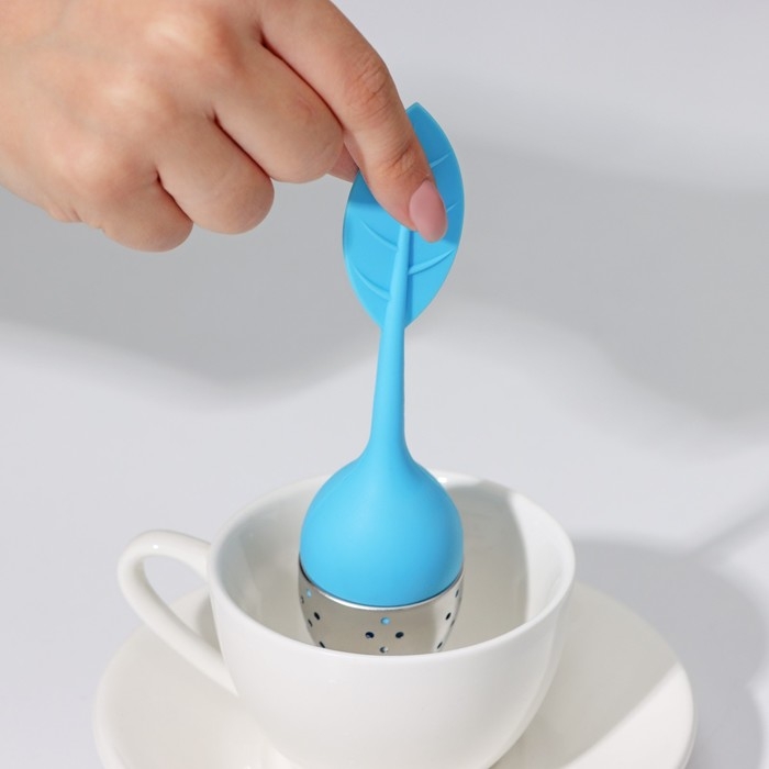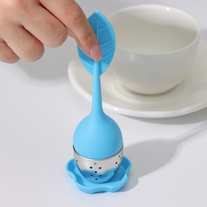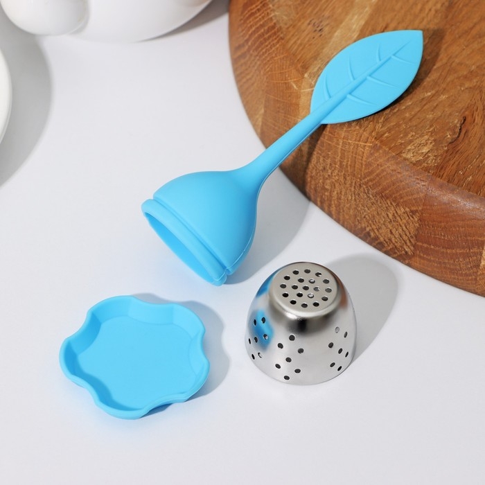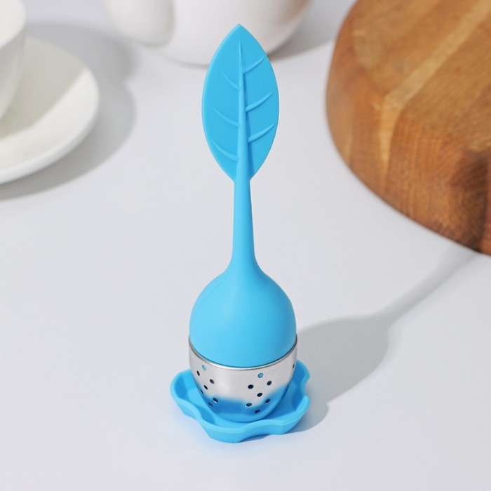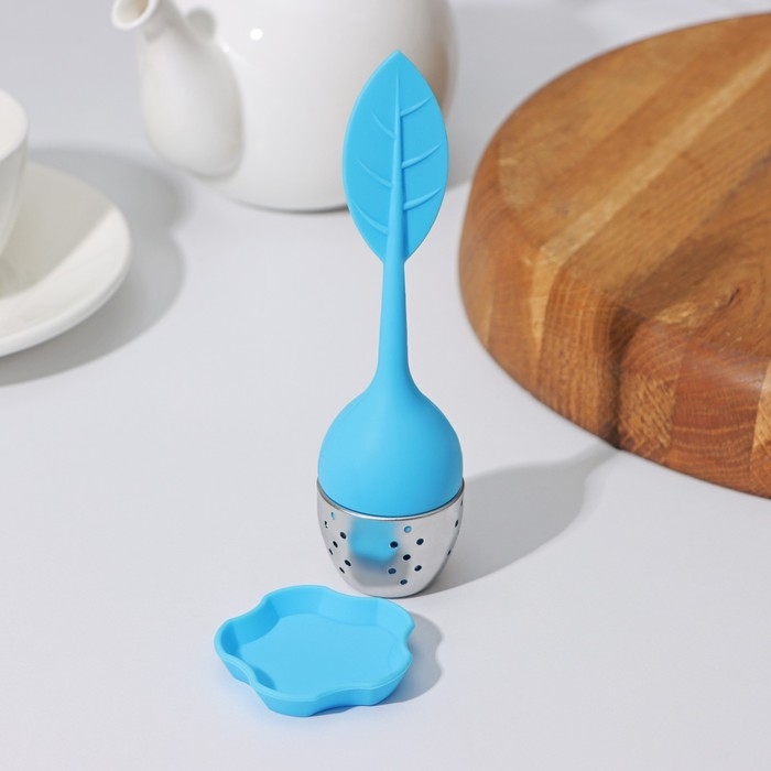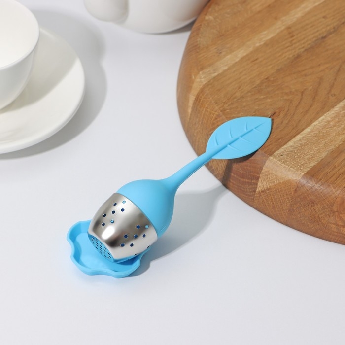Ситечко для чая Доляна «Листок», нержавеющая сталь 304, цвет голубой