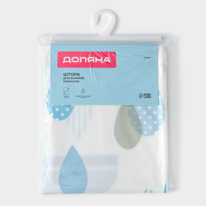 Штора для ванной Доляна «Капли», 180×180 см, EVA