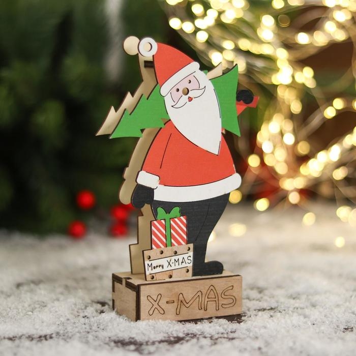 Фигурка новогодняя свет "Дед Мороз с ёлкой и подарками" 10х17 см
