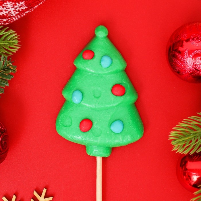 Новый год. Карамель леденцовая на палочке "3D Ёлочка с узорами", 40 г