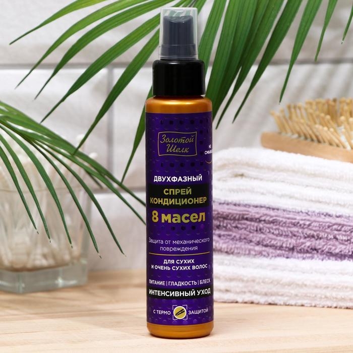 Спрей-кондиционер для сухих и очень сухих волос «Золотой шёлк. 8 масел», двухфазный, 100 мл