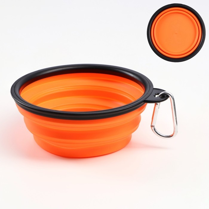 Миска имеет *складную конструкцию**, которая позволяет легко свернуть ее в компактный размер, удобно помещается в сумку или карман, также есть карабин, который позволяет легко прикрепить ее к рюкзаку, поясу или ошейнику вашего питомца.