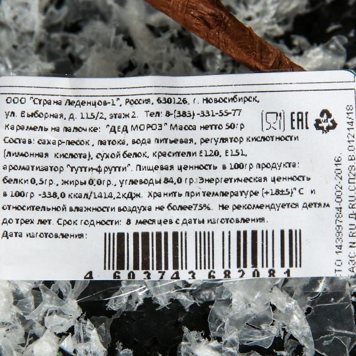 Карамель на палочке «Дед Мороз», 50 г