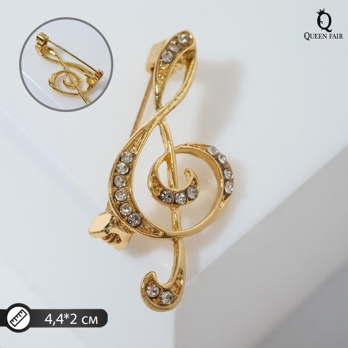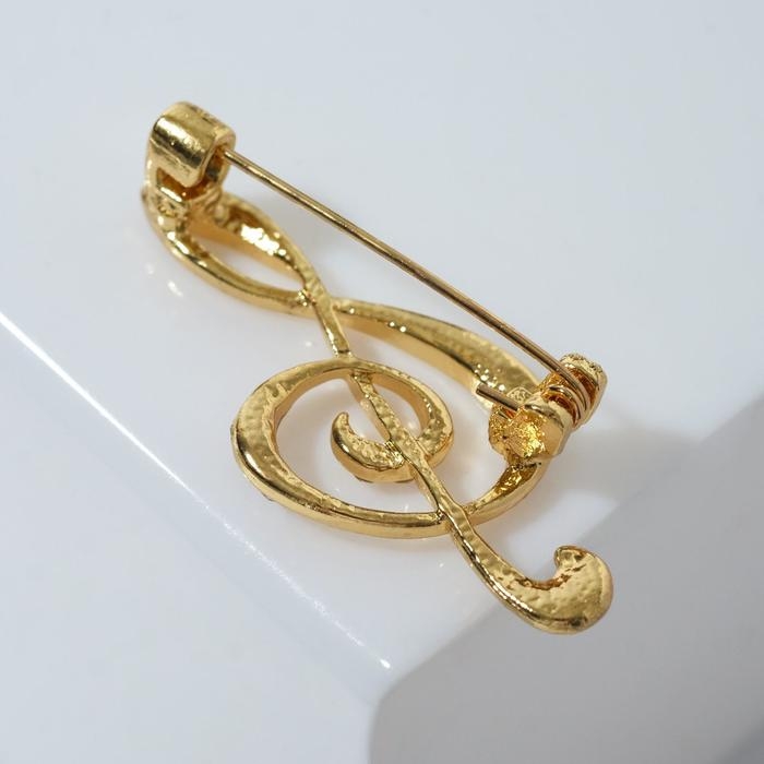 Брошь «Скрипичный ключ» сияние, цвет белый в золоте