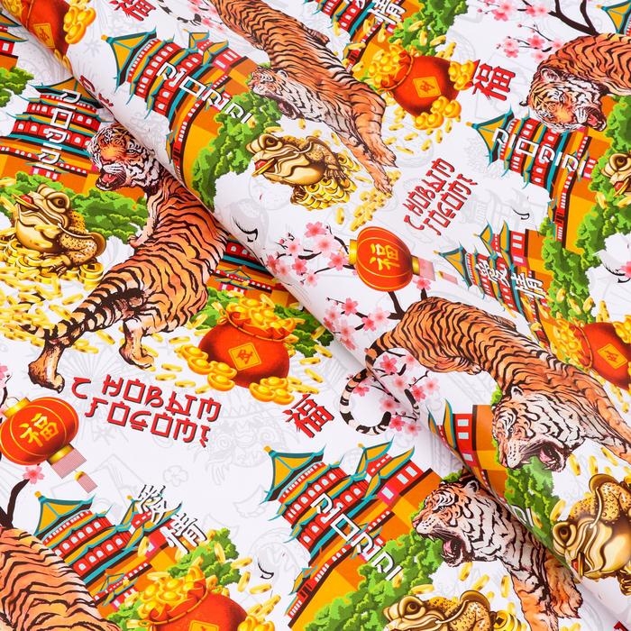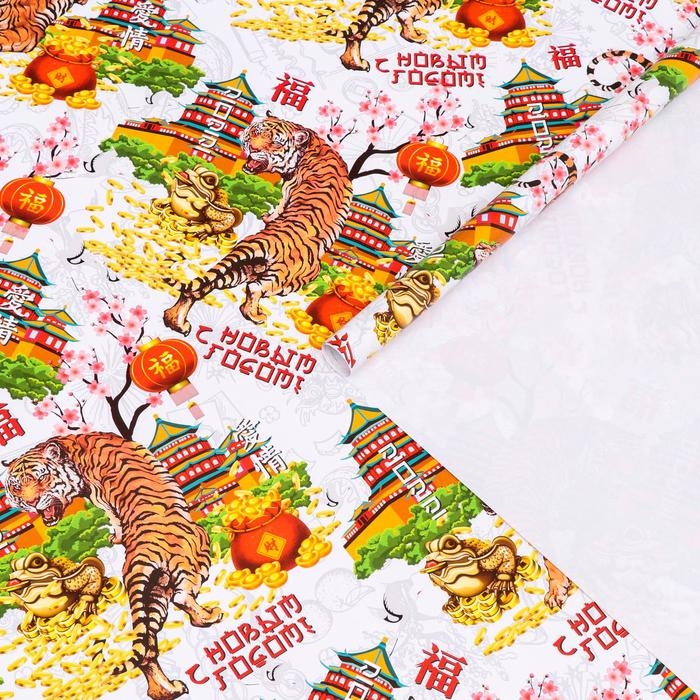 Новый год. Бумага упаковочная новогодняя глянцевая "Китайский новый год", 70 х 100 см.