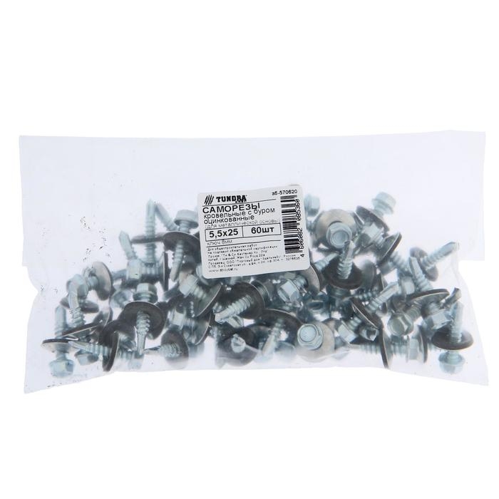 Саморезы кровельные ТУНДРА krep с буром 5.5x25 мм, цинк, 60 шт.