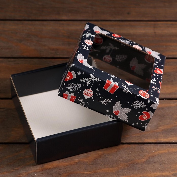Новый год. Коробка подарочная, крышка-дно, "Зимушка", 14,5 х 14,5 х 6 см.
